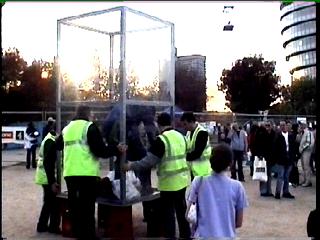 Mark Roberts joined David Blaine on his 44 day stunt without food. Our Mark started his stunt in his own 7'x5'x4' foot Perspex box underneath David Blaine from 15:00 hours on 12th October 2003 for what was planned to be only 44 minutes but was eventually well over two hours due to the massive crowd interest!